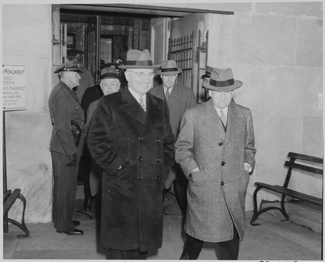 | Keywords: Photograph of President Truman and Secretary of the Interior Harold Ickes, with others, walking inside the Washington... - NARA - 199300.tif Scope and content General notes 199300 Local identifier National Archives and Records Administration Office of Presidential Libraries Harry S Truman Library 04/01/1985 - NARA-Author Rowe Abbie 1905-1967 Photographer 8451352 <br /> Harry S Truman Library NLHST 500 West U S Highway 24 Independence MO 64050-1798 1946-01-14 Record group Collection HST-AVC Audiovisual Collection 1957 - 2006 Record group ARC 1207 Photographs Relating to the Administration Family and Personal Life of Harry S Truman compiled 1957 - 2004 documenting the period 1849 - 2004 Series ARC 198606 File unit File unit ARC Variant control numbers NAIL Control Number NLT-AVC-PHT-73 2145 yes Other versions <gallery> File Photograph_of_President_Truman_and_Secretary_of_the_Interior_Harold_Ickes _with_others _walking_inside_the_Washington _-_NARA_-_199300 tif tif File Photograph_of_President_Truman_and_Secretary_of_the_Interior_Harold_Ickes _with_others _walking_inside_the_Washington _-_NARA_-_199300 jpg jpg </gallery> NARA-cooperation PD-USGov Photographs by Abbie Rowe Harold L Ickes Black and white photographs NARA TIF images with categorized JPGs |