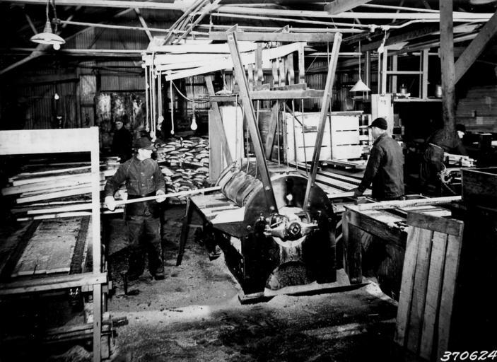 | Keywords: Photograph of Small Dimension Mill - NARA - 2128173.jpg Scope and content Original caption Small dimension mill showing the milling of stock for broom handles and bowling alley pins Ernest Frienier Chest Grienier and Ernest Mignon trimming Nicolet NF General notes 2128173 Local identifier 370624 Department of Agriculture Forest Service Region 9 Eastern Region 1965 - Most Recent <br /> Department of Agriculture Division of Forestry 1881 - 07/01/1901 Predecessor NARA-Place Chequamegon-Nicolet National Forest Wis 4509449 46 29856 -89 9231 <br /> NARA's Great Lakes Region Chicago NRDA 7358 South Pulaski Road Chicago IL 60629-5898 11/1937 Record group Record Group 95 Records of the Forest Service 1870 - 2008 Record group ARC 424 Historic Photographs compiled ca 1880 - ca 1970 Series ARC 1812856 File unit File unit ARC Variant control numbers Agency-Assigned Identifier 370624 Other versions <gallery> File Photograph_of_Small_Dimension_Mill_-_NARA_-_2128173 tif tif File Photograph_of_Small_Dimension_Mill_-_NARA_-_2128173 jpg jpg </gallery> NARA-cooperation PD-USGov USDA NARA images from the Dept of Forestry |