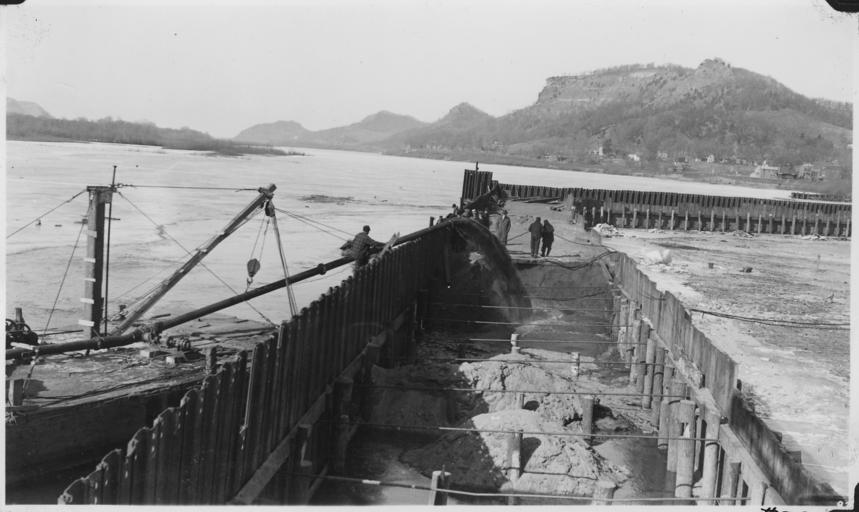 | Keywords: Photograph with caption "Pumping fill into cofferdam with dredge pump," Lock and Dam 6. - NARA - 282417.jpg Scope and content General notes 282417 Local identifier War Department Office of the Chief of Engineers St Paul District 1866 - 09/18/1947 NARA's Great Lakes Region Chicago NRDA 7358 South Pulaski Road Chicago IL 60629-5898 1934-02-08 Record group Record Group 77 Records of the Office of the Chief of Engineers 1789 - 1999 Record group ARC 406 Operations and Maintenance Files Relating to Lock and Dam Numbers 3-10 of the Mississippi River Nine Foot Channel Project compiled 1931 - 1943 Series ARC 282367 File unit 625 9a/9-4 Final Cofferdam Report Lock 6 ca 1931 - ca 1943 File unit ARC 282414 Variant control numbers NAIL Control Number NRDC-77-SLD3-625 9 A9 4 -C92L6 Other versions <gallery> File Photograph_with_caption_ Pumping_fill_into_cofferdam_with_dredge_pump _Lock_and_Dam_6 _-_NARA_-_282417 tif tif File Photograph_with_caption_ Pumping_fill_into_cofferdam_with_dredge_pump _Lock_and_Dam_6 _-_NARA_-_282417 jpg jpg </gallery> NARA-cooperation PD-USGov Mississippi River |