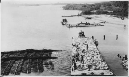 Keywords: Photograph with caption "Rock and brush protection mattress, L-D No. 8...Start of sinking 50 ft. mat below tainter... - NARA - 282413.jpg Scope and content General notes 282413 Local identifier War Department Office of the Chief of Engineers St Paul District 1866 - 09/18/1947 NARA's Great Lakes Region Chicago NRDA 7358 South Pulaski Road Chicago IL 60629-5898 1940-09-14 Record group Record Group 77 Records of the Office of the Chief of Engineers 1789 - 1999 Record group ARC 406 Operations and Maintenance Files Relating to Lock and Dam Numbers 3-10 of the Mississippi River Nine Foot Channel Project compiled 1931 - 1943 Series ARC 282367 File unit 813a 1 Miscellaneous Correspondence ca 1931 - ca 1943 File unit ARC 282409 Variant control numbers NAIL Control Number NRDC-77-SLD3-813A 1 -GOF4 Other versions <gallery> File Photograph_with_caption_ Rock_and_brush_protection_mattress _L-D_No _8 Start_of_sinking_50_ft _mat_below_tainter _-_NARA_-_282413 tif tif File Photograph_with_caption_ Rock_and_brush_protection_mattress _L-D_No _8 Start_of_sinking_50_ft _mat_below_tainter _-_NARA_-_282413 jpg jpg </gallery> NARA-cooperation PD-USGov Mississippi River Lock and Dam number 8 |