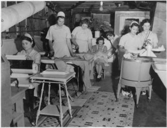 | Keywords: Photograph, WP 10688, OP^665 08 3 169, Household Workers Training Project, San Jose, California (Laundry). (7 persons) - NARA - 296102.jpg Scope and content General notes 296102 Local identifier Work Projects Administration Northern California Office Division of Professional Service Projects 1936 - 1942 NARA's Pacific Region San Bruno NRHAS 1000 Commodore Drive San Bruno CA 94066-2350 ca date 1940 05 20 Record group Record Group 69 Records of the Work Projects Administration 1922 - 1944 Record group ARC 398 This Work Pays Your Community Week Scrapbook 1940; Souveniers Part II of II compiled 05/20/1940 - 05/25/1940 Series ARC 296089 File unit Selected photographs from This Work Pays Your Community Week Scrapbook 1940; Souveniers Part II of II 05/20/1940 - 05/25/1940 File unit ARC 296090 Variant control numbers NAIL Control Number NRHS-69-NCWPC-SBP-12HOUSEWKLAUND2 Other versions <gallery> File Photograph _WP_10688 _OP 665_08_3_169 _Household_Workers_Training_Project _San_Jose _California_ Laundry _ 7_persons _-_NARA_-_296102 tif tif File Photograph _WP_10688 _OP 665_08_3_169 _Household_Workers_Training_Project _San_Jose _California_ Laundry _ 7_persons _-_NARA_-_296102 jpg jpg </gallery> NARA-cooperation PD-USGov People of the United States in 1940 1940 in education Maids in the United States 20th-century women of the United States May 1940 in the United States 1940 in California People of San Jose California Ironing Laundries Domestic workers in 1940 Laundry |