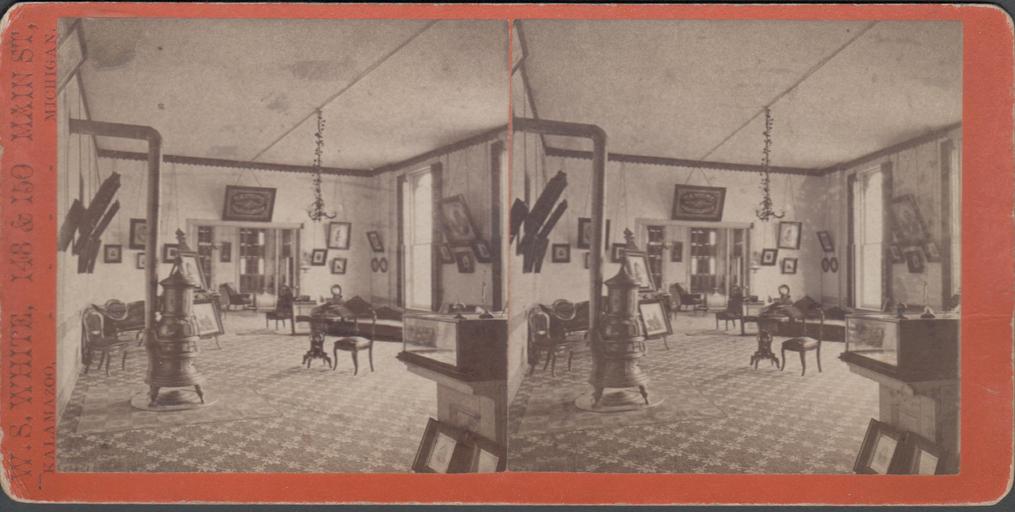 Keywords: kalamazoo history public library photography studio interior stove michigan Interior view; several framed photos hang on the walls and are otherwise displayed throughout the room. Several side chairs and settees are also visible. A wood-burning stove is at the left. A sign over the door reads: "W. S. White Photographer". KPL catalogue number P-880 Interior view; several framed photos hang on the walls and are otherwise displayed throughout the room. Several side chairs and settees are also visible. A wood-burning stove is at the left. A sign over the door reads: "W. S. White Photographer". KPL catalogue number P-880 |