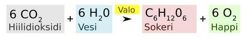 Keywords: Photosynthesis equation finnish.svg en Finnish version of File Photosynthesis equation svg 2012-05-04 own Linnea cc-zero Photosynthesis Diagrams in Finnish Uploaded with UploadWizard