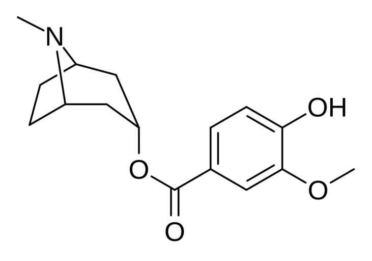 Keywords: Phyllalbine.svg Chemical structure of phyllalbine Own 12 24 23 January 2016 UTC Ed Edgar181 Tropane alkaloids Benzoate esters