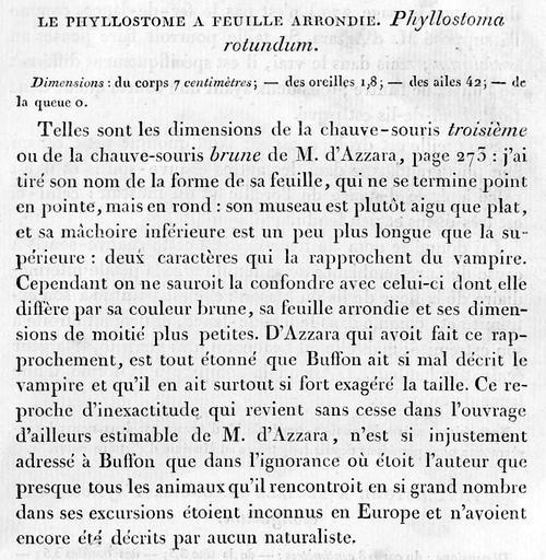 | Keywords: Phyllostoma rotundum É. Geoffroy, 1810 protolog.jpg des roussettes et des céphalotes deux nouveaux genres de la famille des chauve-souris Annales du Muséum National d'Histoire Naturelle vol 15 Ž 1810 p 86-108 1810 creator Étienne Geoffroy Saint-Hilaire PD-old Desmodus rotundus |