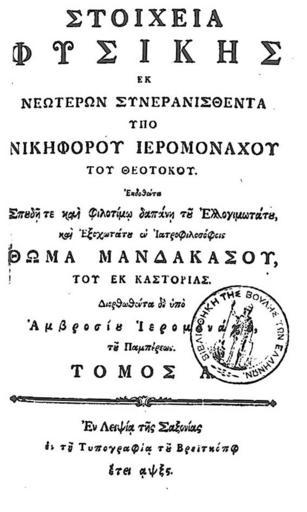 | Keywords: Physics theotokis.JPG Εσώφυλλον α ό το βιβλίο Στοιχεία Φυσικής του Θεοτόκη 1731/1736-1805 http //www lib uoa gr/hellinomnimon/0709241240370000/main htm Βιβλιοοθήκη Ελληνομνήμων 1766 Τυ ογραφία Βρέιγκο φ PD-old-100 Original upload log el wikipedia MARKELLOS CommonsHelper el wikipedia Physics+theotokis JPG 2008-10-12 23 23 Kalogeropoulos 567×946× 81691 bytes <nowiki> Πληροφορίες εικόνας Περιγραφή Εσώφυλλον α ό το βιβλίο Στοιχεία Φυσικής του Θεοτόκη Πηγή http //www lib uoa gr/hellinomnimon/0709241240370000/main htm Βιβλιοοθή�</nowiki> 1766 books Title pages in Greek Nikephoros Theotokis Title pages from Germany Physics books book covers single pages etc Enlightenment philosophy |