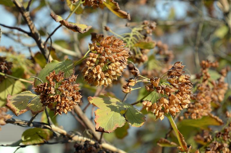 Keywords: physocarpus kalinolistny bush seeds fruit decorative autumn sheet garden opulifolius nature box green shrub plant ornamental plant