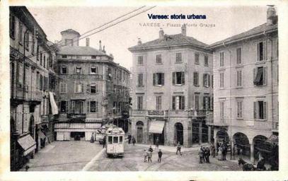 Keywords: varese tram piazza porcari piazzaporcari via verbano viaverbano via walter marcobi viawaltermarcobi corso vittorio emanuele ii corsovittorioemanueleii corso giacomo matteotti corsogiacomomatteotti piazza monte grappa piazzamontegrappa drawing architecture photo border building road outdoor Sulla sinistra casa Carantani già casa Porcari (rimodernata nel 1809 dall'arch. Lorenzo Zuccotti). L'edificio con torretta che ospita la cappelleria e reca l'insegna pubblicitaria dell'hotel Europa di via Sacco verrà demolito nel 1928 per fare spazio a palazzo Verga (ing. Mario Cantù). Tra questo palazzo e casa Cova (all'estrema destra, sostituito dal palazzo R.A.S., ing. Mario Loreti, 1935) è la strettissima via Verbano (ora Marcobi). A destra di casa Cova l'imbocco di corso Vittorio Emanuele II (ora Matteotti) con la casa su portici sostituita nel 1929 da palazzo Mascardi/Pini (ing. Camillo Lucchina). Sulla sinistra casa Carantani già casa Porcari (rimodernata nel 1809 dall'arch. Lorenzo Zuccotti). L'edificio con torretta che ospita la cappelleria e reca l'insegna pubblicitaria dell'hotel Europa di via Sacco verrà demolito nel 1928 per fare spazio a palazzo Verga (ing. Mario Cantù). Tra questo palazzo e casa Cova (all'estrema destra, sostituito dal palazzo R.A.S., ing. Mario Loreti, 1935) è la strettissima via Verbano (ora Marcobi). A destra di casa Cova l'imbocco di corso Vittorio Emanuele II (ora Matteotti) con la casa su portici sostituita nel 1929 da palazzo Mascardi/Pini (ing. Camillo Lucchina).