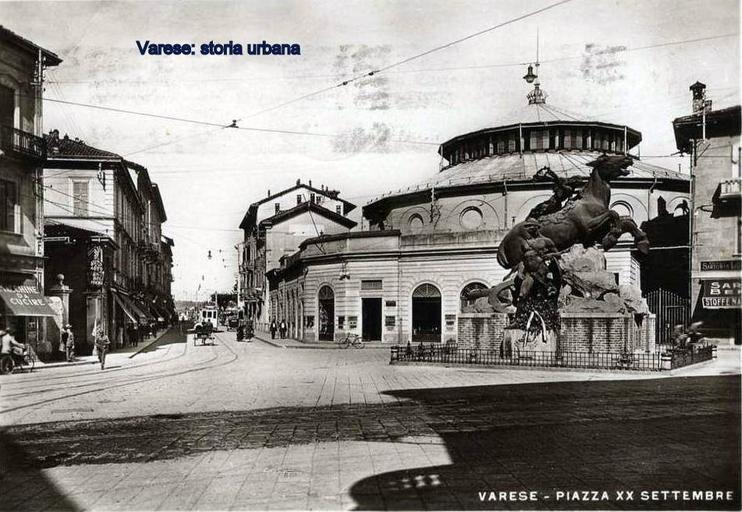 | Keywords: Il monumento ai Caduti, opera di Enrico Butti (1925), collocato in piazza XX Settembre. Alle spalle del monumento il Politeama (aperto nel 1892) e a sinistra via Morosini. tram varese monumentoaicaduti piazzaxxsettembre viamorosini enricobutti |