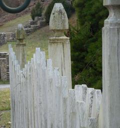 Keywords: picket fence fence white wood garden yard wooden outdoor house backyard private wall rural neighborhood country grass post residential residence suburban village street cottage home lawn landscape