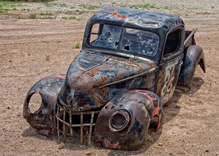 Keywords: pickup truck junk arizona desert oldster heap truck bullet holes broken down hdr