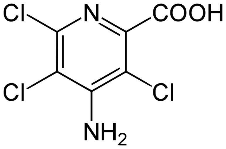 Keywords: Picloram.svg en Picloram; Tordon; 4-Amino-3 5 6-trichloropicolonic acid de 4-Amino-3 5 6-trichlorpikolinsäure Own Yikrazuul 2009-03-27 Picloram