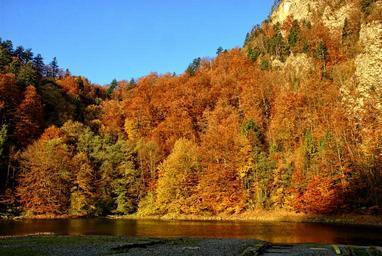 Keywords: pieniny dunajec autumn leaves colors view nature river poland landscape tourism water green forest morning tree foliage rafting beach