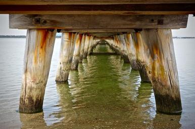 Keywords: pier posts seaside wooden water tranquil coast nature ocean shore scene sea bridge waterfront