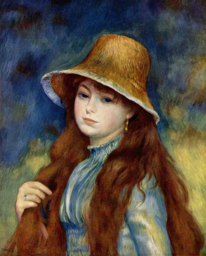 Keywords: Pierre-Auguste Renoir 076.jpg Artwork de Mädchen mit Strohhut oil canvas cm 55 47 de New York de Sammlung E C Vogel Yorck ca 1884 Creator Pierre-Auguste Renoir http //mail wikipedia org/pipermail/wikide-l/2005-April/012195 html Other versions PD-old-auto 1919 PD-Art-YorckProject Straw hats in art Renoir Female long hair in art Paintings of children by Pierre-Auguste Renoir Women facing left in art Subjective Database of Paintings