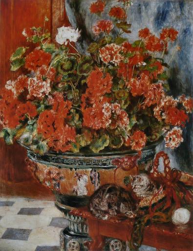 | Keywords: Pierre-Auguste Renoir - Fleurs et chats.jpg Artwork Creator Pierre-Auguste Renoir 1881 Oil on canvas cm 92 7 73 7 Private collection accession number object history credit line bottom right Renoir 81 Renoir peintre du bonheur 1841-1919 de Gilles Néret Köln Taschen 2001 p 147 ISBN 9783822857410 PD-old-auto 1919 Still life paintings by Pierre-Auguste Renoir Still life paintings of flowers Still-life paintings of living animals Impressionist still life paintings Paintings of cats 1881 paintings in France Paintings by Pierre-Auguste Renoir in private collections Taken with Panasonic Lumix DMC-TZ2 Paintings with signatures lower right 1880s still-life paintings |