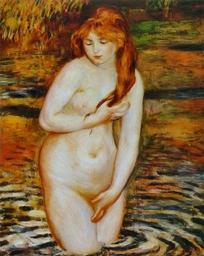 | Keywords: Pierre-Auguste Renoir - Jeune Femme se baignant.jpg Artwork 1888 Oil on canvas cm 85 66 Private collection accession number object history credit line bottom right Renoir 88 Renoir peintre du bonheur 1841-1919 de Gilles Néret Köln Taschen 2001 p 321 ISBN 9783822857410 PD-old-auto 1919 Renoir's bathers Paintings of nude women standing in water outdoors Female toplessness in paintings Female long hair in art Women facing left in art 1888 paintings Paintings by Pierre-Auguste Renoir in private collections Taken with Panasonic Lumix DMC-TZ2 |