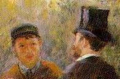 | Keywords: Pierre-Auguste Renoir - Luncheon of the Boating Party (Detail of Laforgue - Ephrussi).jpg Artwork fr Le déjeuner des Canotiers en Luncheon of the Boating Party Das Frühstück der Ruderer Detail of Jules Laforgue left and Charles Ephrussi right oil canvas en Washington D C en Philips Collection Philips Collection en 1881 Creator Pierre-Auguste Renoir Other versions Luncheon of the Boating Party Charles Ephrussi Jules Laforgue Details of paintings by Pierre-Auguste Renoir PD-old-auto 1919 | ||||
