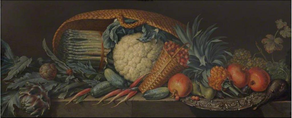 | Keywords: Pieter Andreas Rijsbrack - Still Life of Vegetables, a Pineapple and Other Fruit with a Silver Platter on a Ledge.jpg attributed to en Still Life of Vegetables a Pineapple and Other Fruit with a Silver Platter on a Ledge 1st half of 18th century http //www bbc co uk/arts/yourpaintings/paintings/still-life-of-vegetables-a-pineapple-and-other-fruit-with193699 Oil canvas cm 21 8 50 Corpus Christi College University of Cambridge Other versions PD-old-100 Still life paintings by Pieter Andreas Rijsbrack |