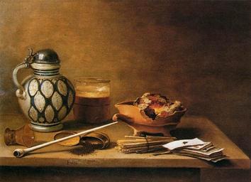 Keywords: Pieter Claesz. - Still-Life - WGA4966.jpg Artwork Creator Pieter Claesz 1636 Oil on canvas Institution Museo Thyssen-Bornemisza object history credit line accession number WGA link 4966 http //www wga hu/art/c/claesz/stillif1 jpg http //www wga hu/html/c/claesz/stillif1 html PD-old-100 painting still-life Dutch 1601-1650 Paintings by Pieter Claesz 1636 Paintings in the Thyssen-Bornemisza Museum Baroque still life paintings in Madrid 17th-century still life paintings in Spain 1630s still life paintings 1636 paintings in Spain WGA form painting WGA type still-life WGA School Dutch WGA time period 1601-1650 Oil still life paintings 17th-century oil on canvas paintings in Spain Jugs in art Pipes smoking
