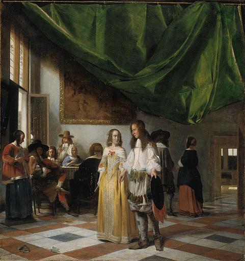 | Keywords: Pieter de Hooch - Merry Company in a Hall - kmssp615.jpg Artwork creator Pieter de Hooch Title Merry Company in a Hall Interieur met twee paren en een musicerend gezelschap ca 1664-1666 247976 ca 1664 “1666 oil canvas cm 72 67 Copenhagen KMSsp615 Statens Museum for Kunst P C Sutton Pieter de Hooch Oxford 1980 cat no 65 ; C Hofstede de Groot Beschreibendes und Kritisches Verzeichnis der Werke der Hervorragendsten Hollandischen Maler des XVII Jahrhunderts vol I Paris 1907 cat no 124 object history credit line http //www apmollerfonde dk/projekter/statens-museum-for-kunst aspx Other versions PD-old-100 Genre paintings by Pieter de Hooch 1670s paintings Paintings in Statens Museum for Kunst |