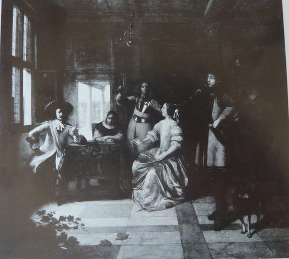 | Keywords: Pieter de Hooch - A Merry Company with a Trumpeter.jpg Artwork creator Pieter de Hooch Title A Merry Company with a Trumpeter ca 1673 “1675 oil canvas cm 85 92 unknown Private collection P C Sutton Pieter de Hooch Oxford 1980 cat no 107 ; C Hofstede de Groot Beschreibendes und Kritisches Verzeichnis der Werke der Hervorragendsten Hollandischen Maler des XVII Jahrhunderts vol I Paris 1907 cat no 176 object history credit line Own Pieter de Hooch Complete Edition by Peter C Sutton Phaidon Press Oxford 1980 ISBN 0714818283 Other versions PD-old-100 Genre paintings by Pieter de Hooch 1670s paintings |