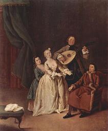 | Keywords: Pietro Longhi 008.jpg Artwork creator Pietro Longhi title the family Concert Das Familienkonzert ca 1752 Oil on canvas cm 62 50 Ca' Rezzonico Venice genre works The Yorck Project 10 000 Meisterwerke der Malerei DVD-ROM 2002 ISBN 3936122202 Distributed by DIRECTMEDIA Publishing GmbH http //mail wikipedia org/pipermail/wikide-l/2005-April/012195 html other versions PD-old-100 PD-Art-YorckProject Pietro Longhi 1752 Paintings in the Museo del Settecento Veneziano 1752 genre paintings 1752 oil on canvas paintings 18th-century oil on canvas paintings in Italy Green curtains in art Lutenists in art Rococo paintings in Italy Rococo paintings of people |