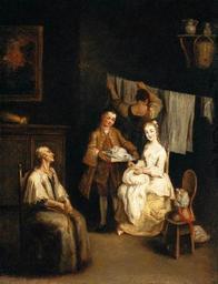 Keywords: Pietro Longhi - An Interior - WGA13415.jpg firsthalf other date century 18 Oil on canvas size cm 72 56 Private collection accession number object history credit line WGA link 13415 http //www wga hu/art/l/longhi/pietro/2/23interi jpg http //www wga hu/html/l/longhi/pietro/2/23interi html PD-old-100 painting interior Italian 1701-1750 Pietro Longhi Paintings in unidentified private collections 18th-century paintings WGA form painting WGA type interior WGA School Italian WGA time period 1701-1750 18th-century way of life in painting 18th-century domestic interiors |