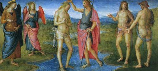 Keywords: Pietro Perugino cat77c.jpg Artwork creator Pietro Perugino ca 1507 Tempera Oil panel cm 17 1 36 6 Galleria nazionale dell'Umbria Perugia object history credit line Cat no 77 in Vittoria Garibaldi Perugino Catalogo completo Octavo Firenze 2000 ISBN 88-8030-091-1 accession number Vittoria Garibaldi Perugino Silvana Milano 2004 ISBN 88-8215-813-6 Reproduction of a painting that is in the public domain because of its age PD-old-100 Galleria nazionale dell'Umbria Perugia Paintings of the baptism of Jesus Christ Oil paintings of people 1500s paintings in Italy 16th-century paintings of the baptism of Jesus Christ Tempera on panel 16th-century oil on canvas paintings in Italy |