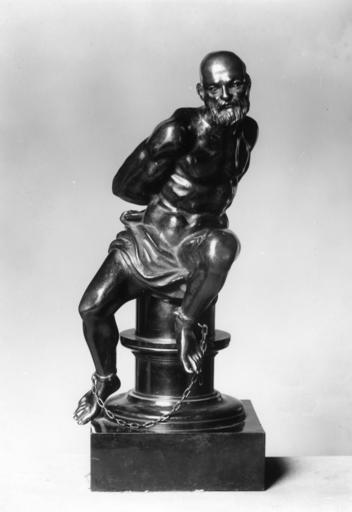 | Keywords: Pietro Tacca - Turkish Corsair - Walters 54672.jpg These bronzes together with Walters 54 671 are small-scale reproductions of two of Pietro Tacca's four figures of Moorish prisoners found on the foot of Baccio Bandinelli's statue of Ferdinand II de'Medici in Livorno Italy Original 1626 Baroque cast bronze ebonized wood pedestal and base cm 49 2 accession number 54 672 10382 Giorgio Sangiorgi Rome date and mode of acquisition unknown Henry Walters Baltimore 1902 acquired at no cost Emile Rey of Seligmann s New York as agent Walters Art Museum Henry Walters Acquired by Henry Walters 1902 World of Wonder The Walters Art Gallery Baltimore 1971-1972 place of origin Italy Walters Art Museum license Baroque sculpture in the Walters Art Museum Pietro Tacca Media contributed by the Walters Art Museum needs category review Media contributed by the Walters Art Museum needs artist update |