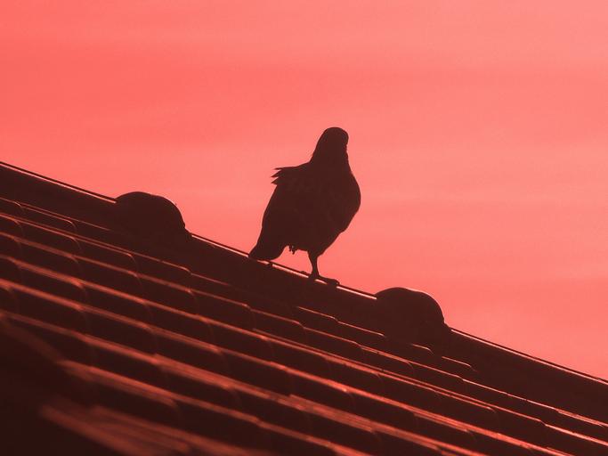 Keywords: pigeon birds sky roof sunset evening sky shilouette