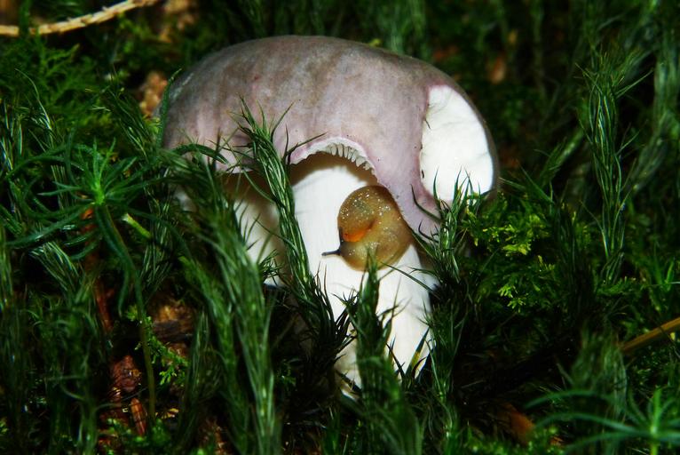 Keywords: pigeon russula grey purple russula russula agaric mushroom snail slug forest floor moss