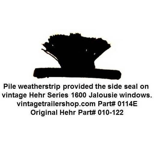 | Keywords: Most late 50s and early 60s vintage trailers used Hehr Jalousie windows. The plastic backing of this pile weatherstrip is identical to the width and thickness of the original aluminum-backing. vintagetrailershop.com Part# 0114E Original Hehr Part# 010-122 |