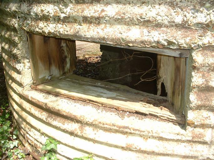 | Keywords: Pillbox Type 25, Sheephatch Lane (embrasure).JPG thumb right Front view of same thumb right Rear view of same Pillbox - Sheephatch Lane Nr Tilford OS reference SU872446 Partially dug-in Accessible by the roadside Flooded Good condition with remains of corrugated iron shuttering and wood shuttering in the embrasures Note hooks for attachment of camouflage netting OS reference http //getamap ordnancesurvey co uk/getamap/frames htm mapAction gaz gazName g gazString SU872446 SU872446 Fortifications of World War II in the United Kingdom Embrasures in the United Kingdom |