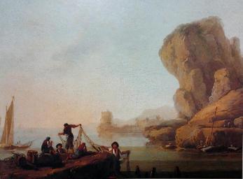 Keywords: Pillement Return from the catch.jpg Artwork Creator Jean-Baptiste Pillement 1769 oil canvas cm 24 32 Institution National Museum Warsaw accession number M Ob 402 object history ProvenanceEvent 1820 purchase Eugeniusz Sokołowski Kaunitz Collection Vienna ProvenanceEvent 1920 purchase National Museum Warsaw ProvenanceEvent 1944 transfer Nazi Germany ProvenanceEvent 1969 transfer National Museum Warsaw Desa Auction House Warsaw credit line J Pillement 1769 signature/date bottom left Iwona Danielewicz Justyna Guze 2009 Le siècle français francuskie malarstwo i rysunek XVIII wieku ze zbiorów polskich Muzeum Narodowe w Warszawie ISBN 97-88371009-61-7 cat no 115b p 398 own BurgererSF See below PD-old-100 DEFAULTSORT 1769; Return from the catch Paintings by Jean-Baptiste Pillement in the National Museum in Warsaw Fishing in art Fishing nets in art