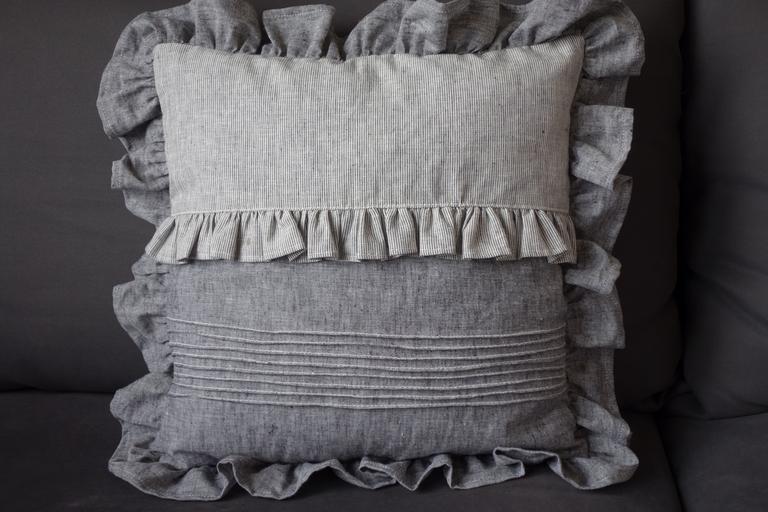 MAKE A MEME View Large Image pillow bedroom couch convenience dream rest relaxation flax frill strips gray blue