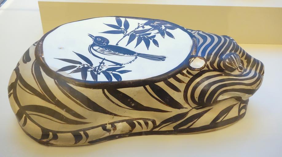 | Keywords: Pillow in the shape of a tiger, China, Henan or Shaanxi province, Jin dynasty, 1206-1234 AD, ceramic, glaze, overglaze black - Asian Art Museum of San Francisco - DSC01359.JPG en Exhibit in the Asian Art Museum of San Francisco San Francisco California USA This artwork is in the public domain because the artist died more than 70 years ago Photography was permitted in the museum without restriction 2013-11-05 20 15 18 own Daderot other versions cc-zero Ceramic pillows in the Asian Art Museum of San Francisco Uploaded with UploadWizard Ceramics of the Jin Dynasty 1115-1234 |