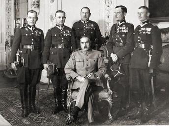 | Keywords: Piłsudski i oficerowie 1 DPLeg.jpg Józef Piłsudski with officers of 1st Legions Infantry Division From the left Stefan Biestek Jak Kruszewski Teodor Furgalski Zygmunt Wenda Władysław Filipkowski IKC 1930 see also https //audiovis nac gov pl/obraz/11638/ unknown-anonymous 1930-02-25 PD-Polish Anonymous-EU Photographs of Józef Piłsudski People of Second Polish Republic Teodor Furgalski Józef Piłsudski in 1930 | ||||