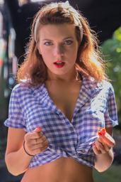 Keywords: pin up model sexy girl face natural light sunlight shine through