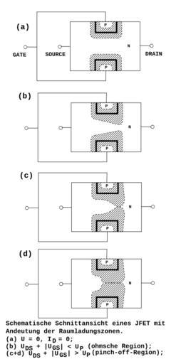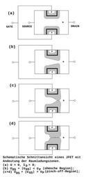 Keywords: Pinch off.svg Entstehung von Pinch off und Arbeitsverhalten im JFET own 2008-05-22 NorbertR public domain own work JFET