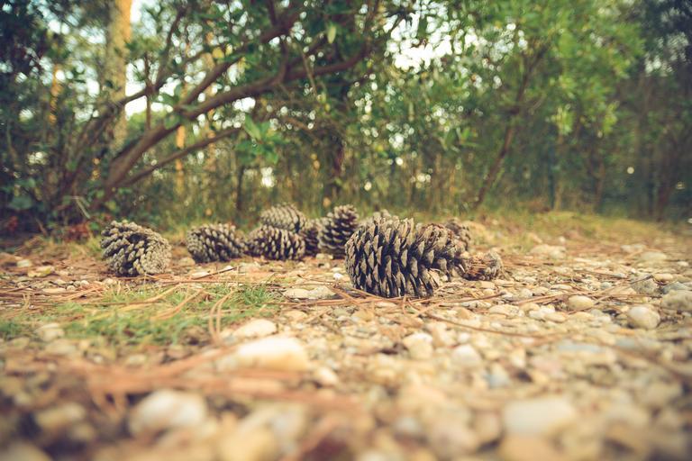 Keywords: pine cones ground forest trees woods nature foliage