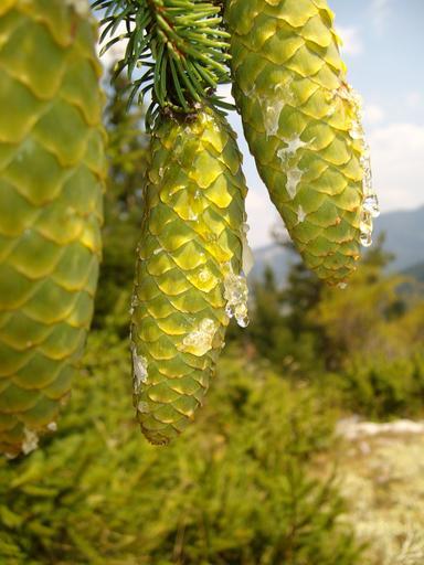 Keywords: pine cones mountain tree organic agriculture outdoors environment trunk leaves branches nature woodland forest