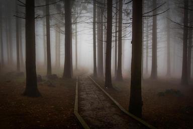 Keywords: pine forest forest road misty mystic pine wood nature critter fog winter trees fearful spooky frightening