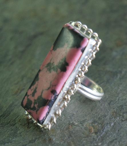 Keywords: pink black jasper silver metal jewelry jewel stone gem gemstone huge cabochon cab ring setting sterling