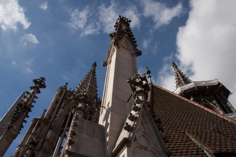 | Keywords: pinnacles stone chiseled slim pointed turret gothic architecture superelevation buttresses aesthetic function static construction weight stabilize achteckiger shank leib tracery ornament middle section finial cornice crabs pyramidal peak east tower main tower münster ulm cathedral building church ulm city |