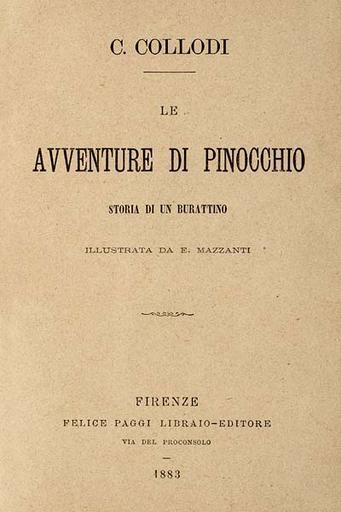 Keywords: Pinocchio by Collodi, first edition Paggi 1883.jpg en first page of the book Pinocchio by Carlo Collodi Felice Paggi libraio editore Firenze 1883 http //ve torontopubliclibrary ca/pinocchio/1st html author 1883 Carlo Collodi Pinocchio PD-old-100 |