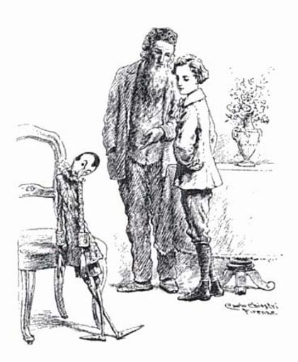 Keywords: PinocchioChiostri28.jpg it Pinocchio diventa un bambino in carne ed ossa Illustrazione di Carlo Chiostri 1863 - 1939 dal libro di Collodi Le avventure di Pinocchio 1901 Scan of a book Collodi Le avventure di Pinocchio 1901 Carlo Chiostri 1863 - 1939 1901 Carlo Chiostri Le avventure di Pinocchio PD-old |