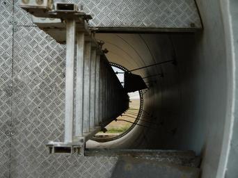 Keywords: pinwheel construction unfinished platform metal head hole access inside tube