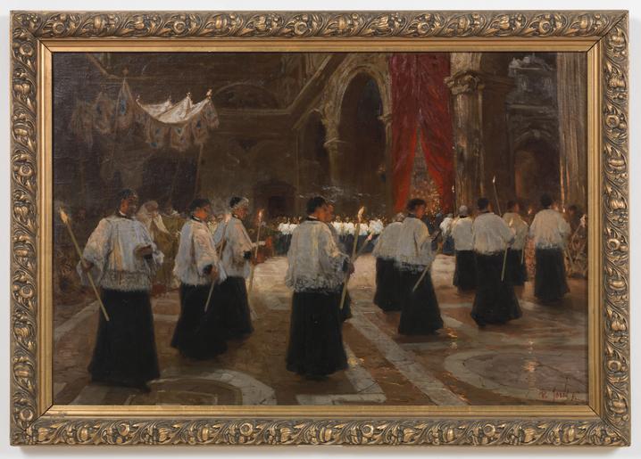 | Keywords: Pio Joris – Processione in una chiesa di Roma.tiff Artwork Creator Pio Joris Processione in una chiesa di Roma 1899 oil canvas Size cm 62 93 Rome Processione in una chiesa di Rome LangSwitch Photographed by the Museum of Modern and Contemporary Art of Trento and Rovereto uploaded by User Mushroom Opera fotografata dal Museo d'arte moderna e contemporanea di Trento e Rovereto caricata da User Mushroom PD-old-auto-1923 1921 Mart Pio Joris Processions in Lazio Churches in Rome Oil paintings of people |