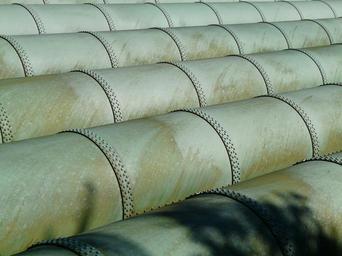 Keywords: pipes copper water pipe line metal green oxidized rivet